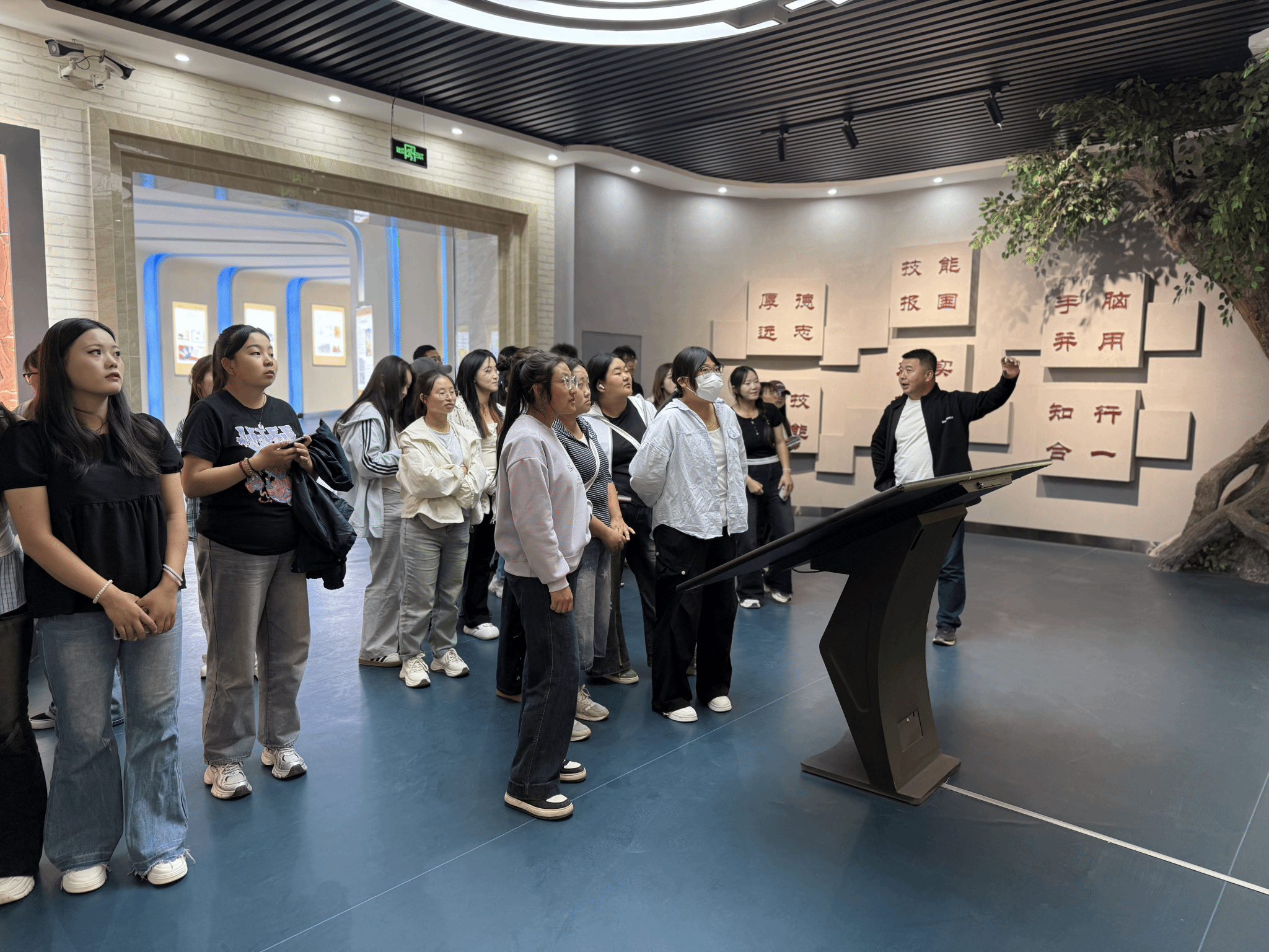 实习首站,同学们来到了学校综合体验中心。这里不仅是学校发展历史的缩影,更是一个融合了地域文化与专业成果的立体课堂。