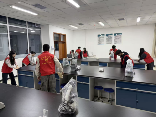 活动伊始,负责人组织志愿者签到集合,明确清扫分工、安全规范及工作标准,将志愿者分为办公室组、实验室组、公共区域组和安全检查组。各小组迅速行动、各司其职,志愿者们手持清洁工具,不怕脏、不怕累,认真清理卫生死角。办公室组规整文件、擦拭门窗,实验室组清洁实验台、消毒水槽、规范器皿摆放,公共区域组清扫走廊楼梯、清洁卫生间,安全检查组细致排查水电、消防及危险品摆放安全隐患,全程井然有序、配合默契。